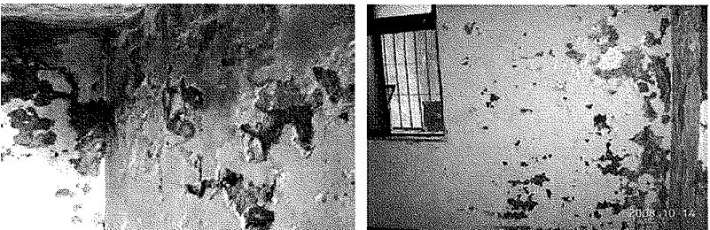 3. 下面圖片中建築物損害及受到外力後破壞情況,水分進入水泥砂漿(或混凝土)内部,在空氣中造成化學物質析出到建築物表面形成白色晶體,試問白色晶體物質的成因稱為?
