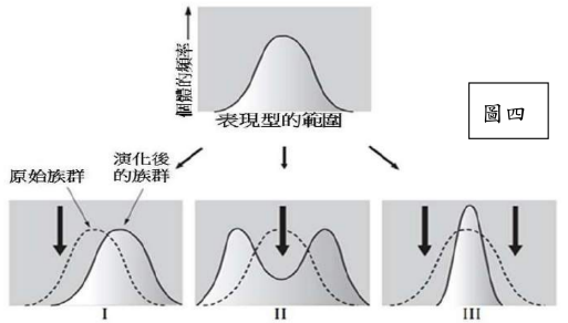 80. 下欄中說明天擇的三個實例,圖四則呈現天擇的三個型態 圖形與解釋的配對,何者正確?