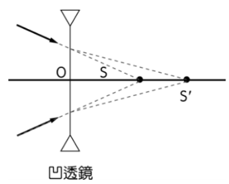 【已刪除】19、一束會聚光線會聚於 S 點,若在 O 點放一凹透鏡,則此光束 會聚於 S' 點,已知