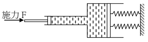 ,大活塞連接兩條彈力常數均為 10N/m、自然長度皆為 10cm 的彈簧,則當兩彈簧均被壓縮 2cm 時,小活塞上的施力大小應為多少?
