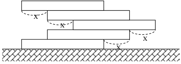 的相同石塊,石塊之間不用任何方式黏合或固定,為使堆疊 的石塊不倒塌,則石塊間伸出相等的長度 X,最多 X 可為