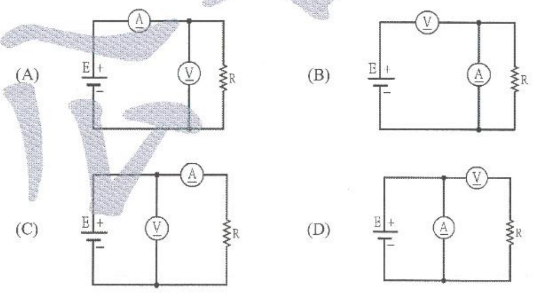 3.利用電壓表、電流表量度高電阻時,其正確接線應為下列何者?