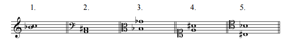 2. 在不移動音符位置、僅改變譜號、調號與臨時 記號前提下,將右列譜例移低小三度記譜。(應寫 出正確譜號與調號)