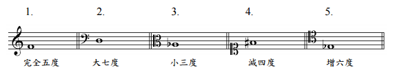 【已刪除】(一) 寫出下列各題兩音之間的音程名稱。