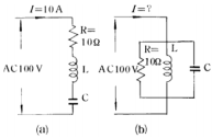 74. 如下圖所示,RLC 串聯如(a)圖時有 10A 電流,若並聯如(b)圖而接於同一電源,則電流 I 為(A)10A(B)20A(C)3 0A(D)0A。