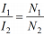 90. 變壓器之一次電流為 I1,一次線圈匝數為 N1,變壓器二次電流為 I2,二次線圈匝數為N2,下列何者正確? (A)
