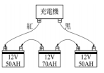59. 如圖所示係電瓶充電之接線圖,下列敘述何者正確?(A)充電機電壓為三個電瓶電壓之和且充電機電流與各電 瓶電流均相等(B)充電機電壓為三個電瓶電壓之和且充電機電流為三個電瓶電流之和(C)充電機電壓與各電瓶電 壓均相等且充電機電流為三個電瓶電流之和(D)充電機電壓與各電瓶電壓均相等且充電機電流與各電瓶電流均 相等。