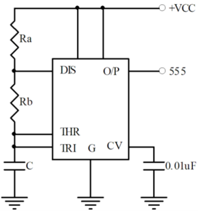 (A)為無穩態多諧振盪器(B)振盪週期 T=0.693(R a+2Rb)C(C) V