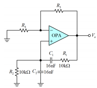 (A)輸出電壓振幅大小為 OPA 之正負飽和 值(B)振盪頻率約為 10KHz(C)電阻值