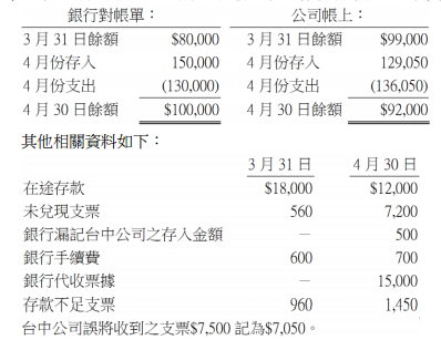 368. 台中公司於 4 月 30 日編製 4 月份之現金存款調節表,各項資料如下: 其他相關資料如下: