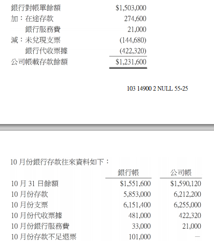下列何者敘述正確(A)台中公司 10 月 31 日之在途存款為$84,600(B)台中公司 10 月 31 日之未兌現支票為$24 8,280(C)台中公司 10 月 31 日銀行存款正確餘額為$1,937,120(D)台中公司 10 月 31 日銀行存款正確餘額為$1, 388,920。
