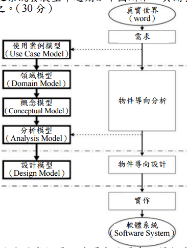 【已刪除】一、何謂系統發展生命週期(System Development Life Cycle, SDLC)包含的內容?系統 發展生命週期主要可分為那兩大類?有那些主要階段?請條列說明之。物件導向塑 模之系統分析與設計之系統發展生命週期如下圖所示,其開發方式屬於那種軟體生 命週期模型?請說明之。(30 分)