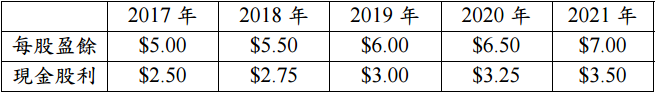 【已刪除】二、T 公司 2017~2021 年的每股盈餘及現金股利發放如下表: