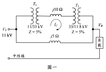 = 11 kV。試以 10 MVA、11/33 kV 為基準值, 求出循環電流 I