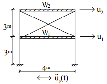【已刪除】一、二層構架如圖所示,假設為剛性樓板,而呈「剪力屋架」之結構行為。考量地表運 動僅為一個方向時,其數學模式可以下圖之二階自由度代表之: