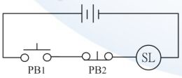51.如下圖所示,兩個按鈕開關PB1、PB2控制指示燈SL亮熄,「押下」表示按鈕開關押下,「放開」表示按鈕開關放開,則(A)PB1押下、PB2押下時,SL亮(B)PB1放開、PB2放開時,SL熄(C)PB1押下、PB2放開時,SL亮(D)PB1放開、PB2押下時,SL熄。