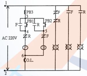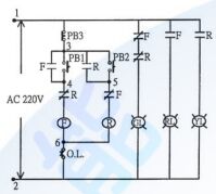 45.如下圖所示,測試點1~2有220V電壓,GL亮,但按PB1時F不動作其可能原因為
