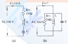 29.如下圖所示,RLC串聯如(a)圖時有10A電流,若並聯如(b)圖而接於同一電源,則電流I為(A)0A(B)10A(C)30A(D)20A。