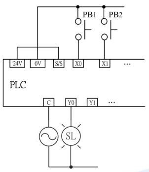 70.如下圖所示為PLC的輸入/輸出點與外部元件的接線圖,輸入部份:X0接PB1按鈕開關a接點,X1接PB2按鈕開關a接點,輸出部份:Y0接指示燈SL。當押下PB2時,X1ON,且指示燈SL亮,下列選項中哪些符合上述要求