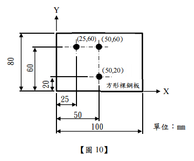 【已刪除】4.如【圖 10】所示之方形裸鋼板淨重 4 kg,已銲接 3 個圓形小鋼片(每片重量為 50 g,銲料重量 不計,中心座標如圖示),今欲加銲第 4 個圓形小鋼片(重量為 50 g,銲料重量不計),使配重 後之重心回復至原本方形裸鋼板的重心,請問此第 4 個圓形小鋼片之中心座標為何?(須列出 計算過程)