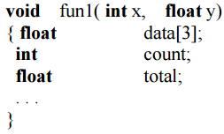 【已刪除】五、程式執行過程常會產生啟動記錄(activation record),請解釋什麼是 activation record。 若有一 C 副程式,其參數(parameter)與區域變數(local variables)如下,請以圖 示說明其 activation record。(20 分)