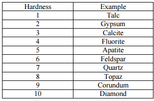 ___ 7. Glass has a hardness of 5.5. According to the table, which could glass scratch?