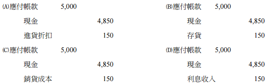 2 甲公司存貨會計處理採用永續盤存制,X1 年 3 月 12 日購入存貨一批,發票價格為$10,000,付款條件為 3/10,n/30,甲公司於 3 月 21 日支付該批進貨半數之發票金額,甲公司 X1 年 3 月 21 日之會計記錄為何?