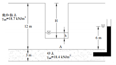 19 有一土層如圖中所示,地表下方 12 m 處為 A 點,飽和土壤單位重為 2.1 T/m