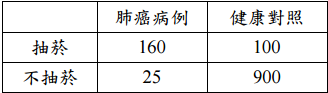 【已刪除】⑵若因經費不足,只能在此一封閉世代中進行病例對照研究,所得結果如下表。此 研究為何種研究設計?並計算危險對比值。(7 分)