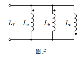 【已刪除】四、圖三所示為 3 個電感器之並聯,其磁通方向並不完全一致。設其自感量分別為: L