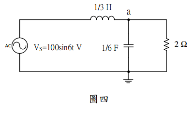 【已刪除】五、試求圖四所示單相交流電路中,節點 a 的電壓。 (20 分)
