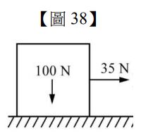 38.如【圖 38】所示,有個 100 N 的物體靜置於平面上,施予 35 N 的水平力,可使該物體開始運動,請問物體與接觸平面間的靜摩擦係數為何? (A) 0.30 (B) 0.35 (C) 0.40 (D) 0.45