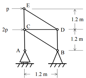 【已刪除】二、一個桁架承受如圖所示之負載。假設元件 BC 之最大容許承載力為 3 kN,試問負載 p 的最大容許值為多少?(25 分)
