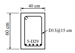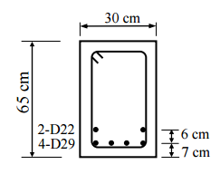 【已刪除】一、圖示為鋼筋混凝土簡支梁之矩形斷面,梁之跨度為 8 m。此梁承受使用均佈靜載 重 2.5 tf/m(含自重)與活載重 2.5 tf/m。梁配置拉力鋼筋 2-D22 與 4-D29。混凝 土 f'