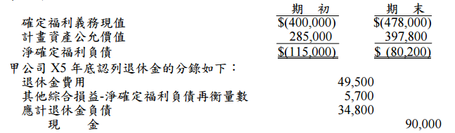 【已刪除】三、甲公司與員工訂定非相對提撥之確定福利退休計畫,X5 年期初及期末的淨確定福利負債調節 表如下: