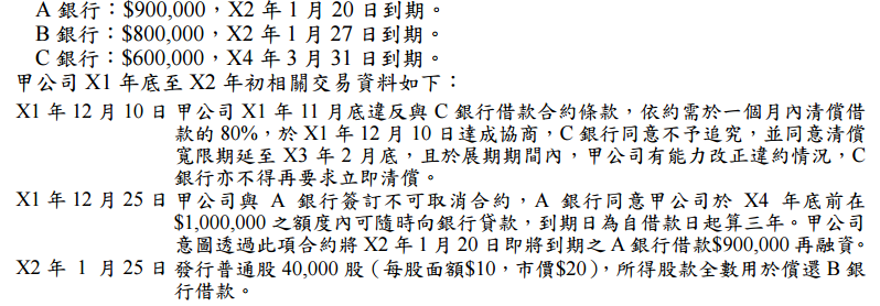 【已刪除】五、甲公司 X1 年 12 月 31 日負債資料如下: ⑴應付現金股利$210,000,預計於 X2 年 3 月 15 日發放。 ⑵預收貨款$650,000,預計於 X2 年 5 月 30 日交貨。 ⑶分期償還公司債$4,000,000,其中$1,000,000 於 X2 年 3 月到期,其餘在 X3 年以後到期。 甲公司於 X1 年底已提列$1,000,000 償債基金,可供償還 X2 年 3 月到期之金額。 ⑷銀行借款: