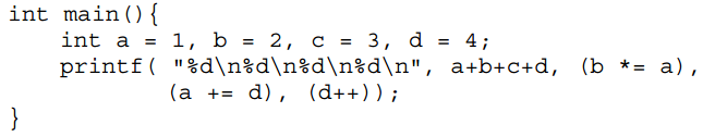 【已刪除】五、請問下列 C 語言程式碼執行後輸出結果為何?(20 分)