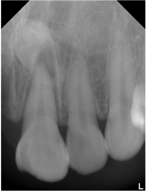 67.下圖X光影像中,左上正中門齒最可能的診斷為何?