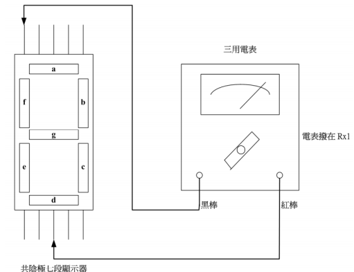 (A)各段完全不亮(B)a 段會亮(C)f 段會亮(D)g 段會亮。