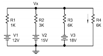 125. 下圖電路流過 R4 電阻 6KΩ 的電流為下列何者?