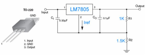 (A)本電路是一個電壓調整器電路(B)假設 Iref 小 到可以忽略,其輸出電壓約為 0V(C)如果想要在輸出端獲得+5V 電壓輸出,則要將 R2 短路(D)將 R2 的電阻改 用可變電阻則可以改變輸出的電壓。