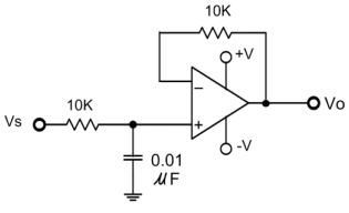 (A)一階高通濾波器其截止頻率為 1.59MHz(B)一階低通濾波器,其截止頻率 為 1.59KHz(C)二階高通濾波器其截止頻率為 1.59KHz(D)二階低通濾波器,其截止頻率為 1.59MHz。