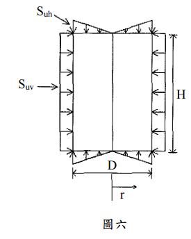 【已刪除】⑴假設十字片剪力試驗儀之直徑為 D,高度為 H。進行十字片剪力試驗時水平向不 排水剪力強度 Suh 與垂直向不排水剪力強度 S