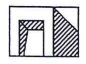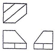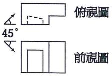 14. 有一物體,其俯視圖及前視圖如左圖示,若自然光之照射方向及角度皆為 45°,則前視圖之陰影(斜線部分)應為 (A) (B)(C) (D)