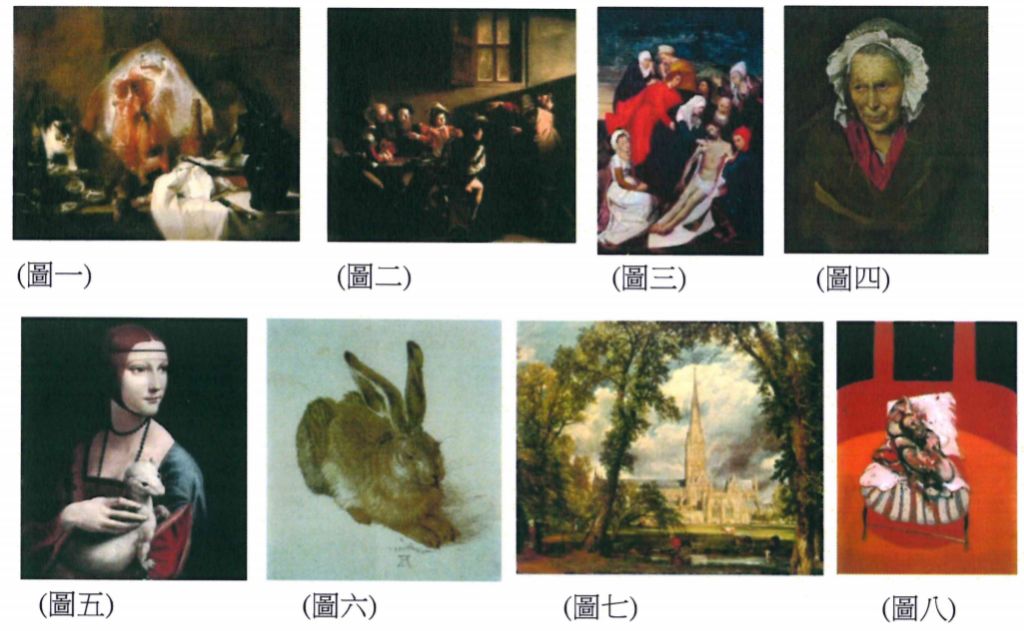 3.請按照「年代」先後順序排列下圖(圖一)到(圖八): (A)(圖一)→(圖三)→(圖四)→(圖五)→(圖六)→(圖二)→(圖七)→(圖八) (B)(圖三)→(圖五)→(圖六)→(圖二)→(圖四)→(圖七)→(圖一)→(圖八) (C)(圖三)→(圖五)→(圖六)→(圖二)→(圖一)→(圖四)→(圖七)→(圖八) (D)(圖五)→(圖三)→(圖六)→(圖一)→(圖二)→(圖四)→(圖七)→(圖八)。