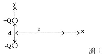2. 如圖1所示,假設r>>d,則在距離電偶極中心r處的電場為? (A)(B) (C) (D) (E)