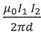 10. 兩長直導線相距d,流有相同方向、數值分別為I₁、I₂的電流,則I₂所受單位長度的磁力為? (A),排斥力 (B),吸引力 (C),排斥力 (D),吸引力 (E)0