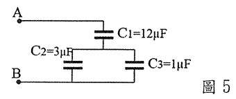 15. AB間的等效電容值為? (A)1 (B)2 (C)3 (D)4 (E)6 μF