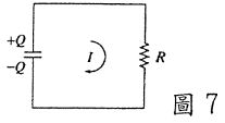 17. 如圖7,迴路中電容器C的電壓為V₀,則開始放電後,電容器上的電荷隨時間變化的函數Q(t)為? (A)CV₀(1-e) (B)CV₀e (C)CV₀(1+e) (D)CV₀ (E)CV₀e