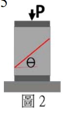 14圖 2 係混凝土圓柱試體的抗壓強度試驗示意圖,一般這種承受軸向力之材料在θ為(A)30° (B)45° (C)60° (D)75°